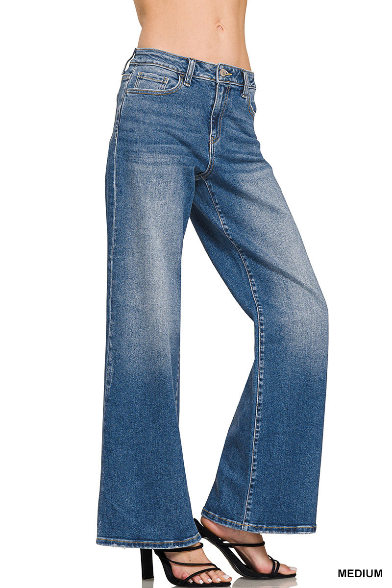 HIGH WAIST STRAIGHT LEG MEDIUM WASH DENIM PANTS