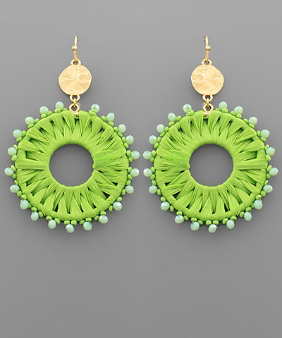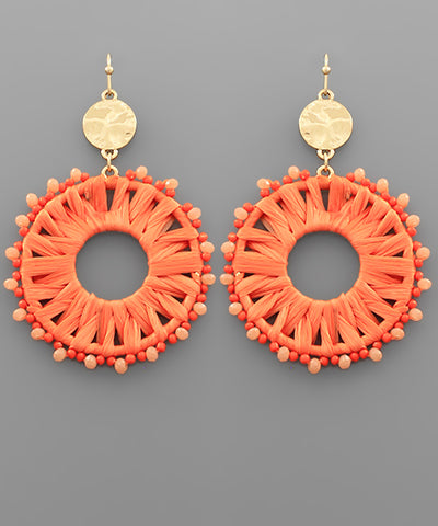 EP45718 Raffia Circle Bead Dangle Earrings