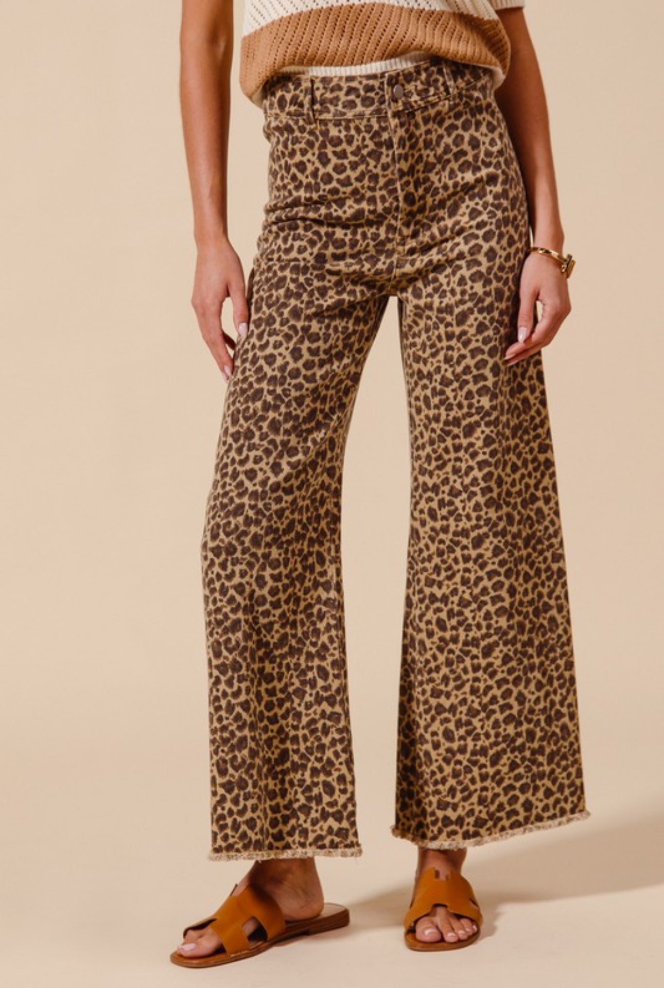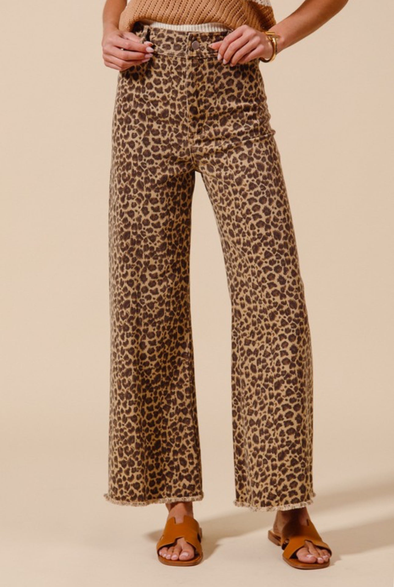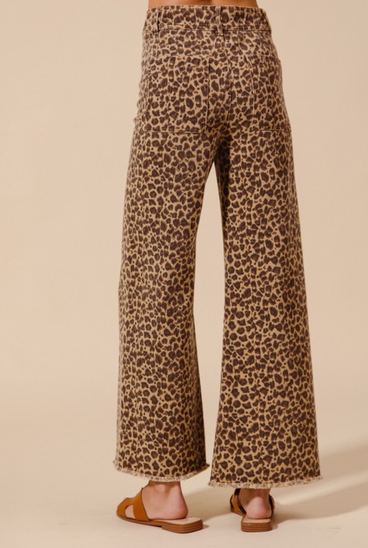 JB1042-04 Leopard Frayed Hem Wide Leg Jeans