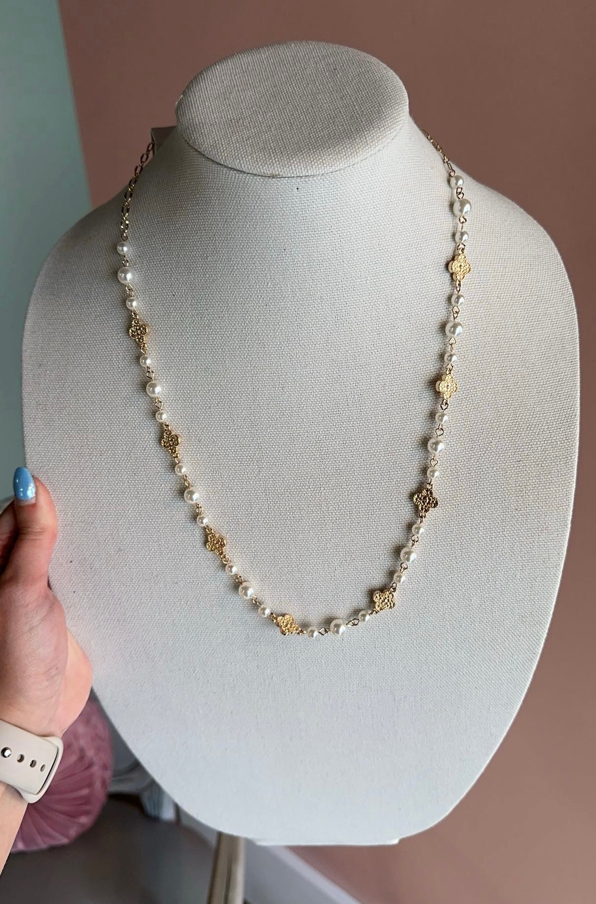KNE8098 26” Quatrefoil and Pearl Necklace