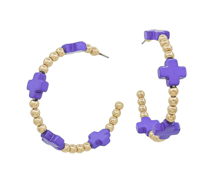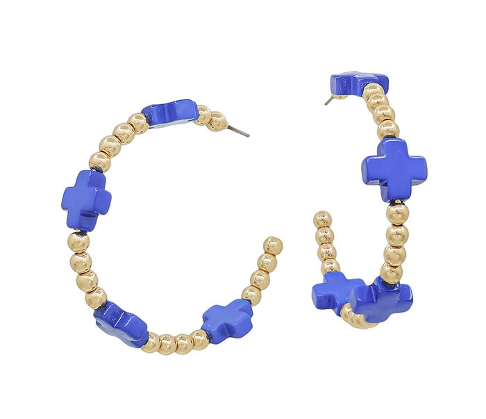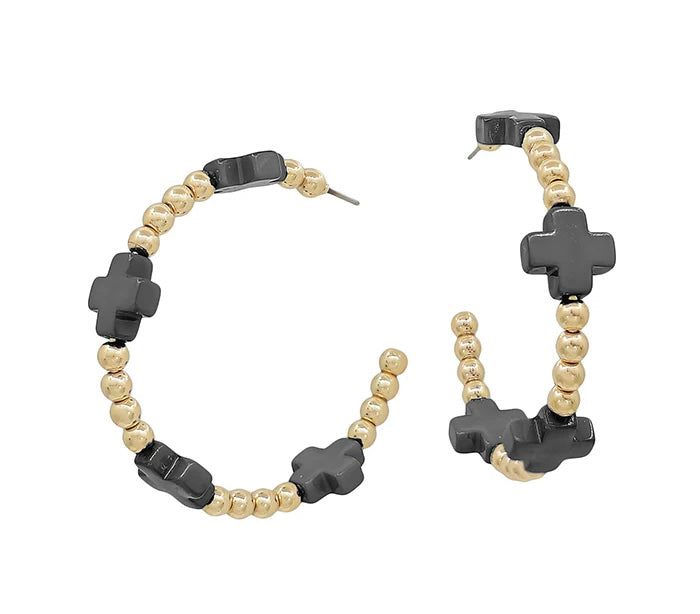 ME1729 Water Resistant Gold Beaded Cross Shape Earrings