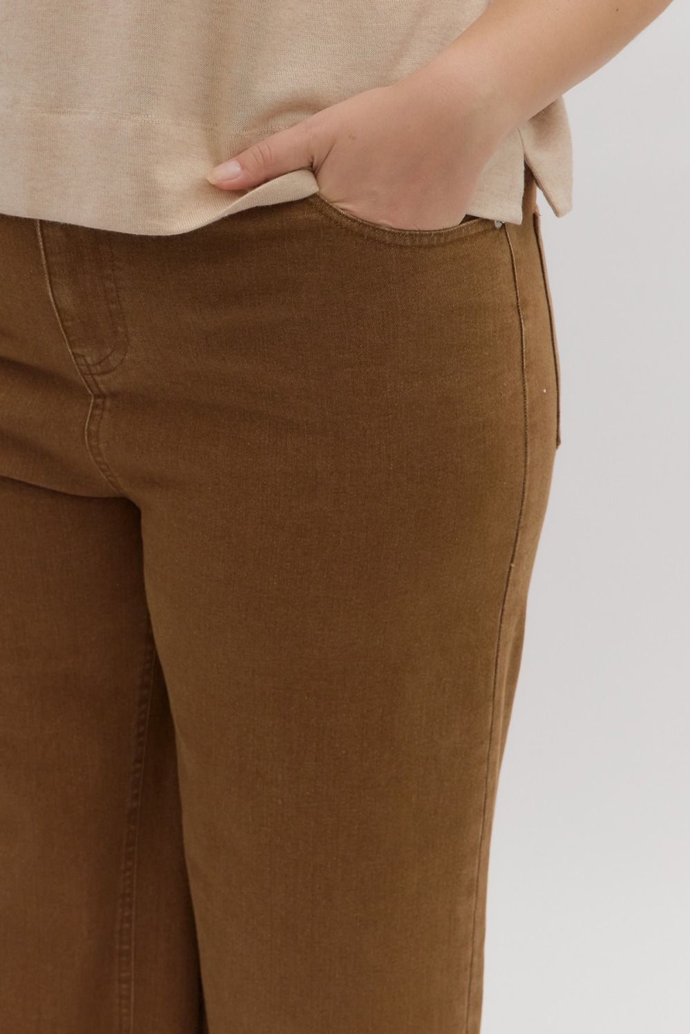 P26396P Curvy Floral Embroidered Border Hem Pants