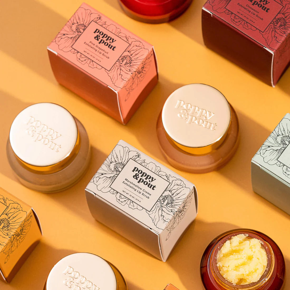 Poppy & Pout's Exfoliating Lip Scrubs are the perfect way to prep your pout for smooth, hydrated lip balm application. We use a clean combination of natural ingredients to help clean and gently exfoliate your lips. Our Pink Grapefruit lip flavor has been a best-seller for years due to its light, fruity scent.