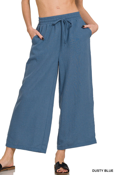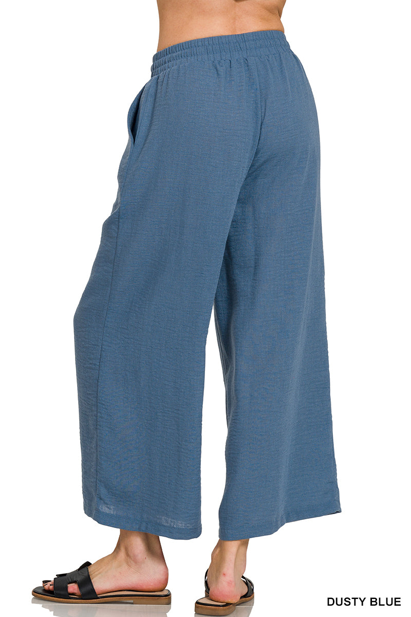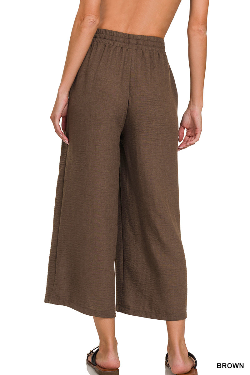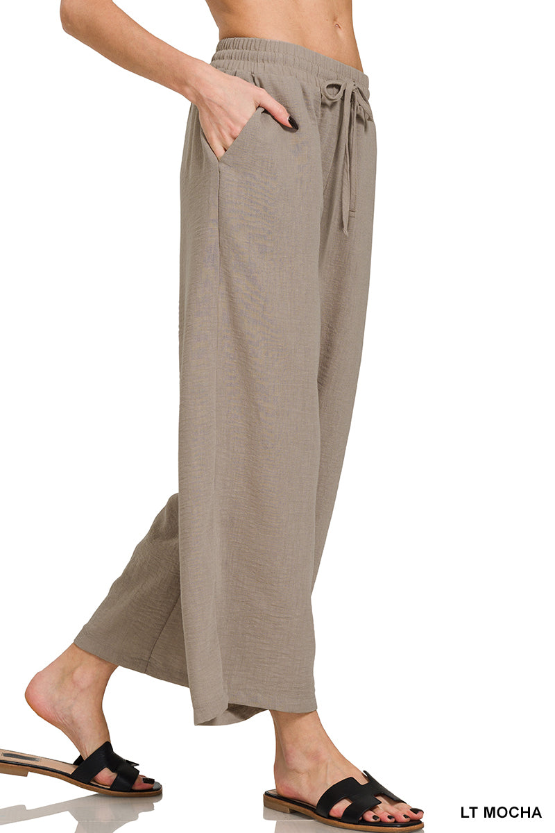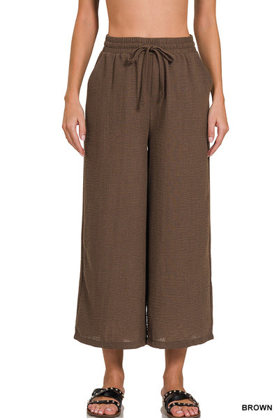 WOVEN CREPE ELASTIC BAND WAIST CROPPED PANTS