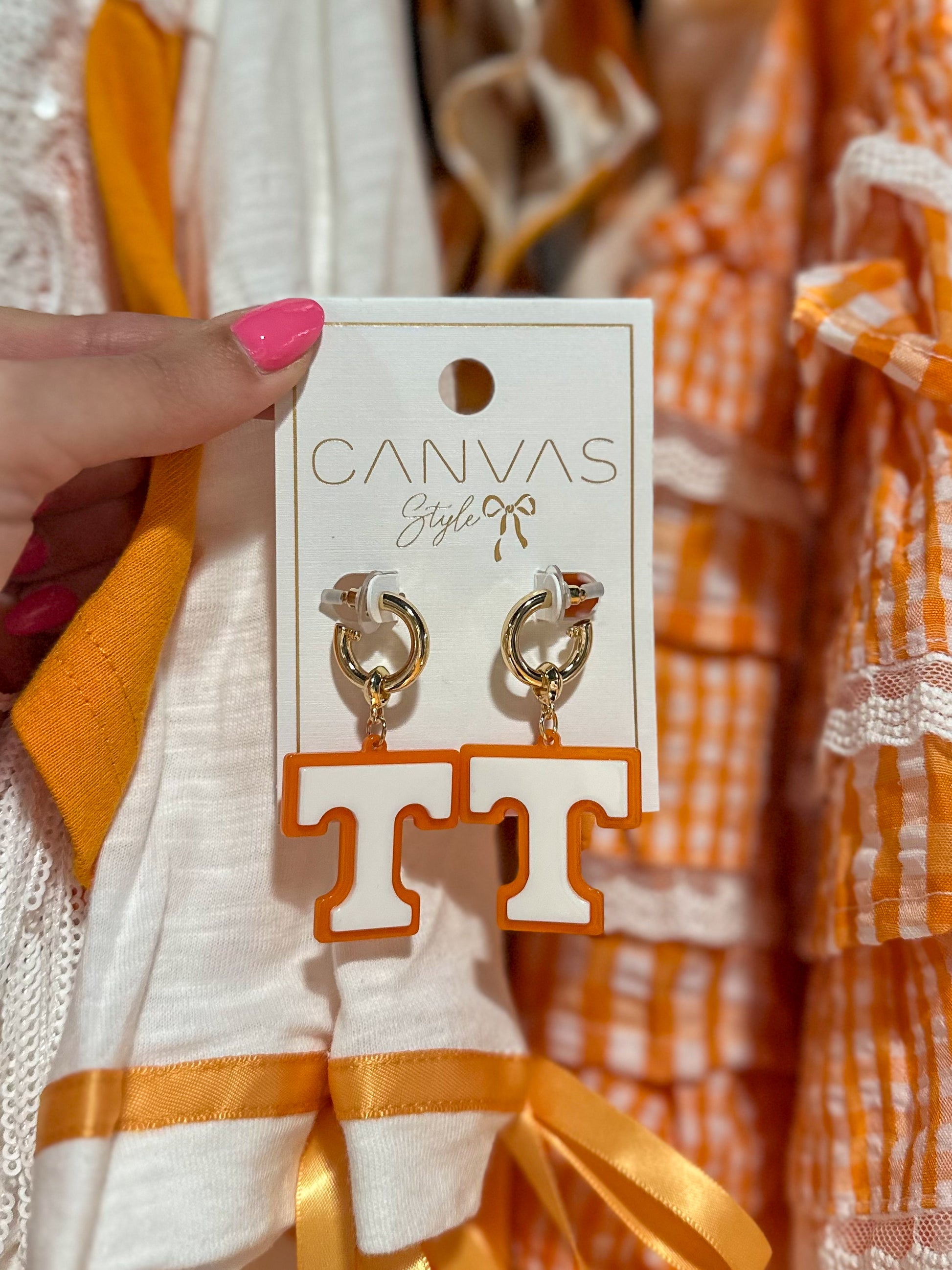 These Tennessee Vols Resin Logo Drop Hoop Earrings are the perfect way to show your school spirit! These lightweight statement earrings will have you cheering on your team from the stands in style.