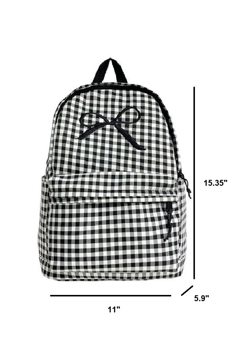 COQUETTE BOW EMBROIDERED CHECKERED BACKPACK
