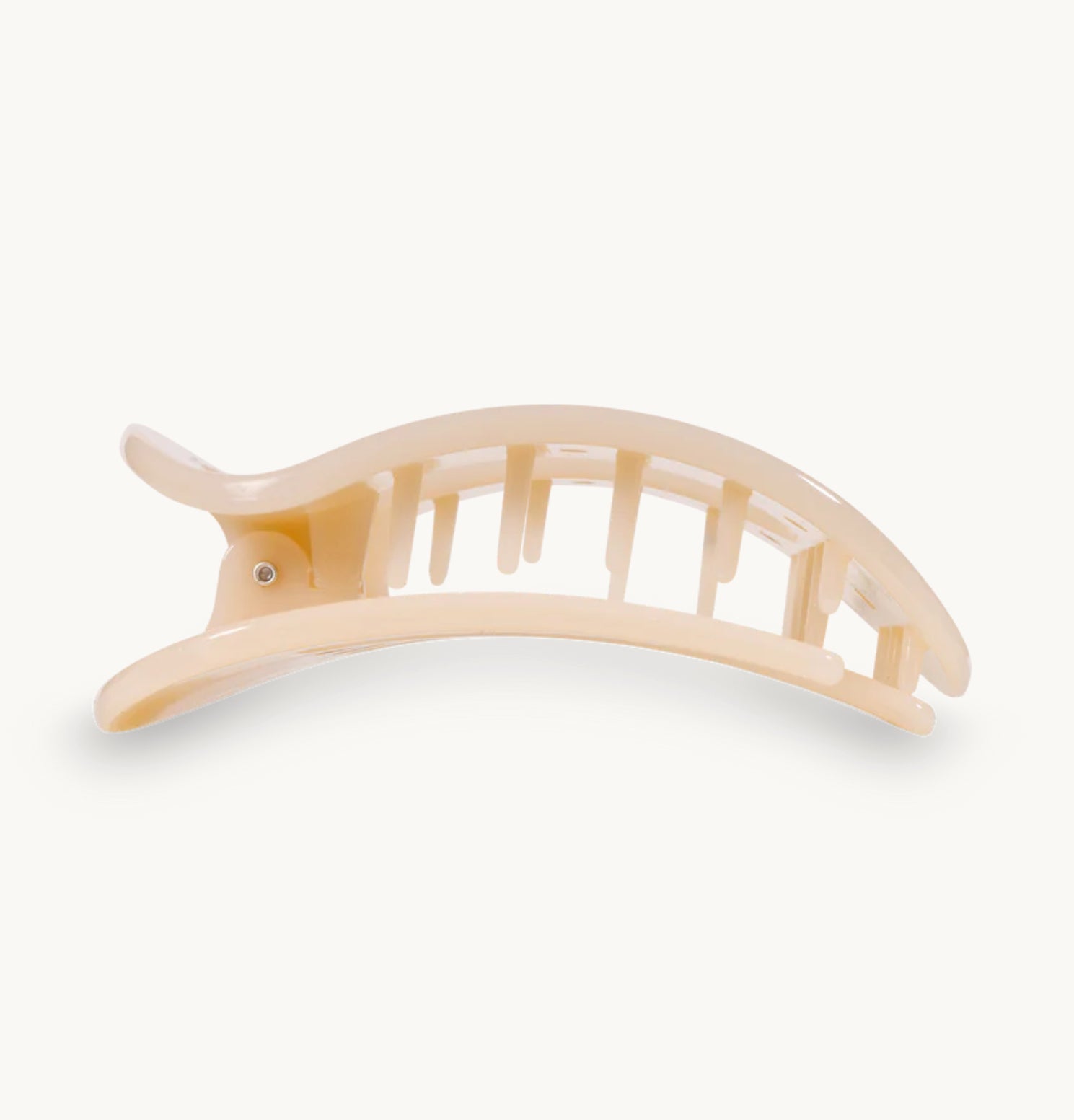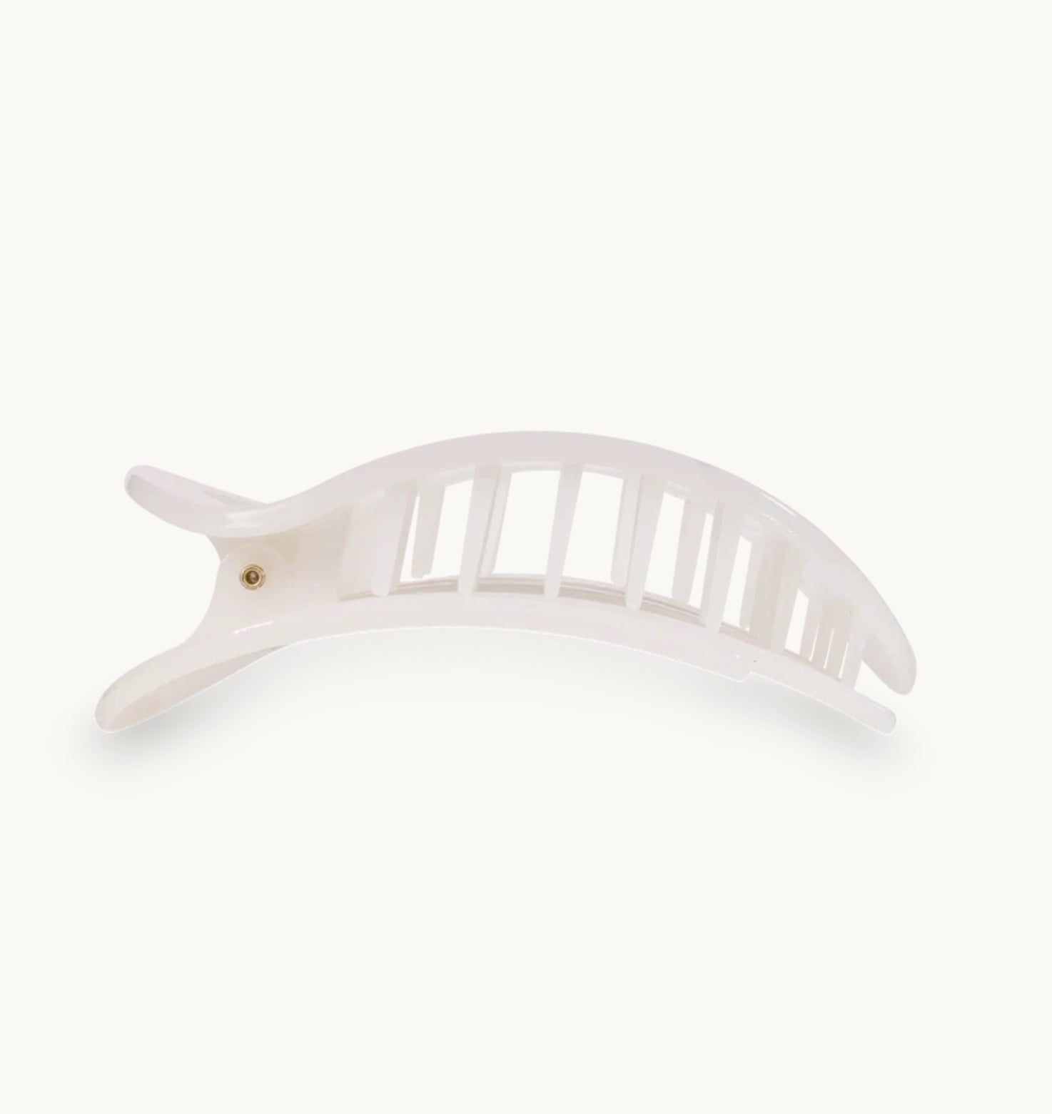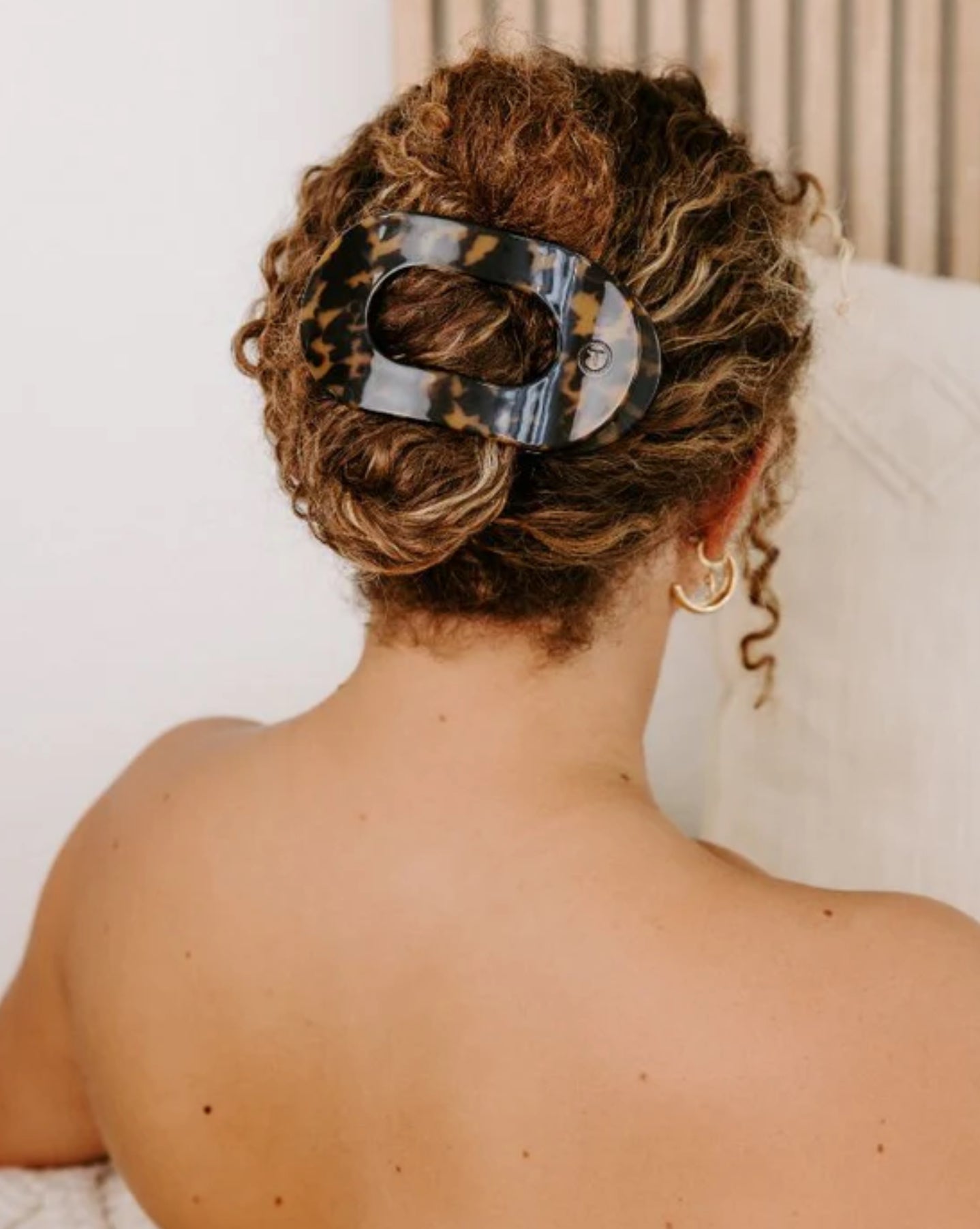 Unwind and relax with the new TELETIES Flat Round Hair Clip! Designed with our same innovative material that is nearly unbreakable, this clip is perfect for lying down, doing yoga or simply laying back without discomfort.